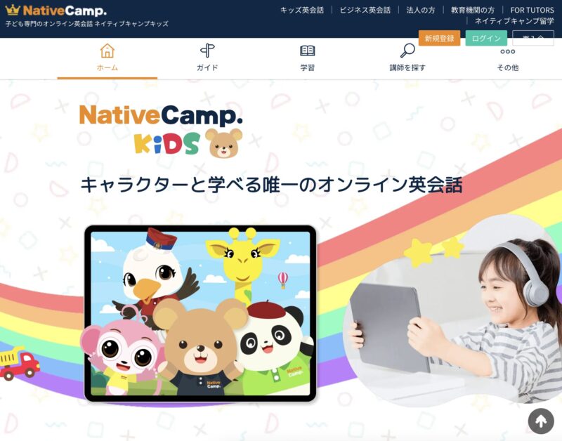 ネイティブキャンプキッズはキャラクター先生が“緊張の壁”を軽くし、歌やチャンツでテンポよく成功体験を積ませられます。